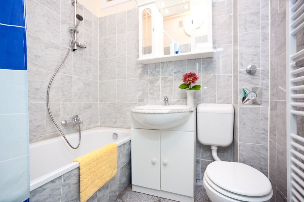 Das Bad hat eine Badewanne und WC. Handtücher und Bettwäsche sind vorhanden. Das Haus hat einen Lift durch den alle Appartements bequem zu erreichen sind.