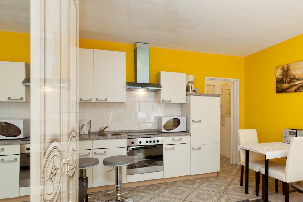 Größe : 30qm 1 Zimmer Appartement in der 4.Etage mit Balkon. Die gesamte Wohnung wurde modernisiert und ist jetzt im Topzustand. Das Appartement verfügt über Laminatfußboden und Teppich. Kühlschrank, Bügeleisen, Kaffemaschine, Toaster, Wasserkocher, Besteck, Töpfe und Geschirr sind vorhanden.