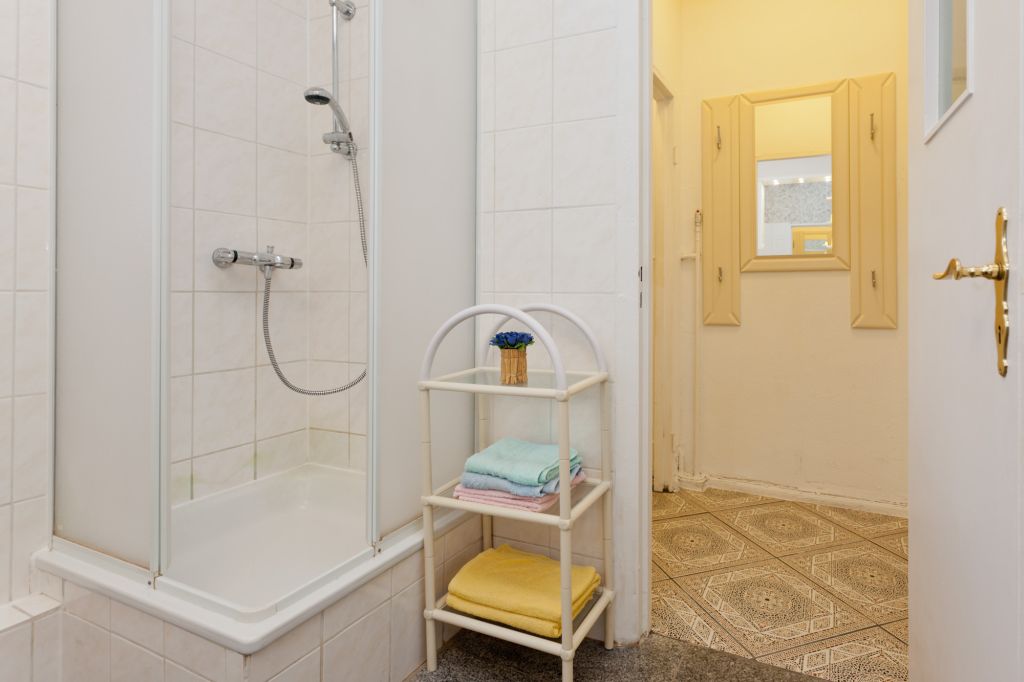 Das Bad hat eine Badewanne und WC. Handtücher und Bettwäsche sind vorhanden. Das Haus hat einen Lift durch den alle Appartements bequem zu erreichen sind.
