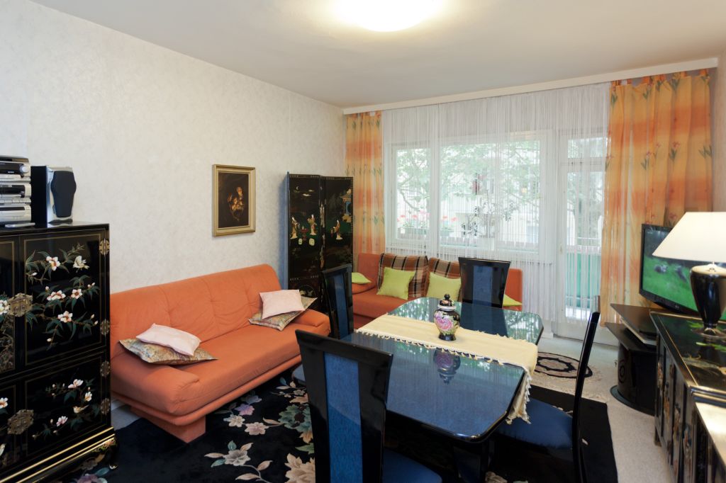 Das möbilierte Wohnzimmer, im chinesischen Stil, hat ein Digitalfernsehgerät (70 cm Diagonale), einen Esstisch mit 4 eleganten Stühlen, eine Dreiercouch und einen zusätzlichen Sessel. Die zwei Schlafzimmer haben jeweils ein Doppelbett (1,80m X 2,00m), ein Schlafzimmer hat einen großen Kleiderschrank (2,60m lang).